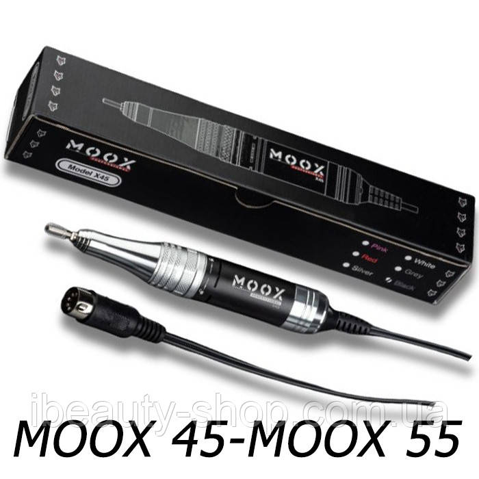 Ергономічний дизайн забезпечує зручне утримання в руці, що робить процес манікюру легким та приємним. Moox X45/X50 – це інструмент, який поєднує в собі стиль, ефективність та довговічність для досягнення професійних результатів догляду за нігтями.